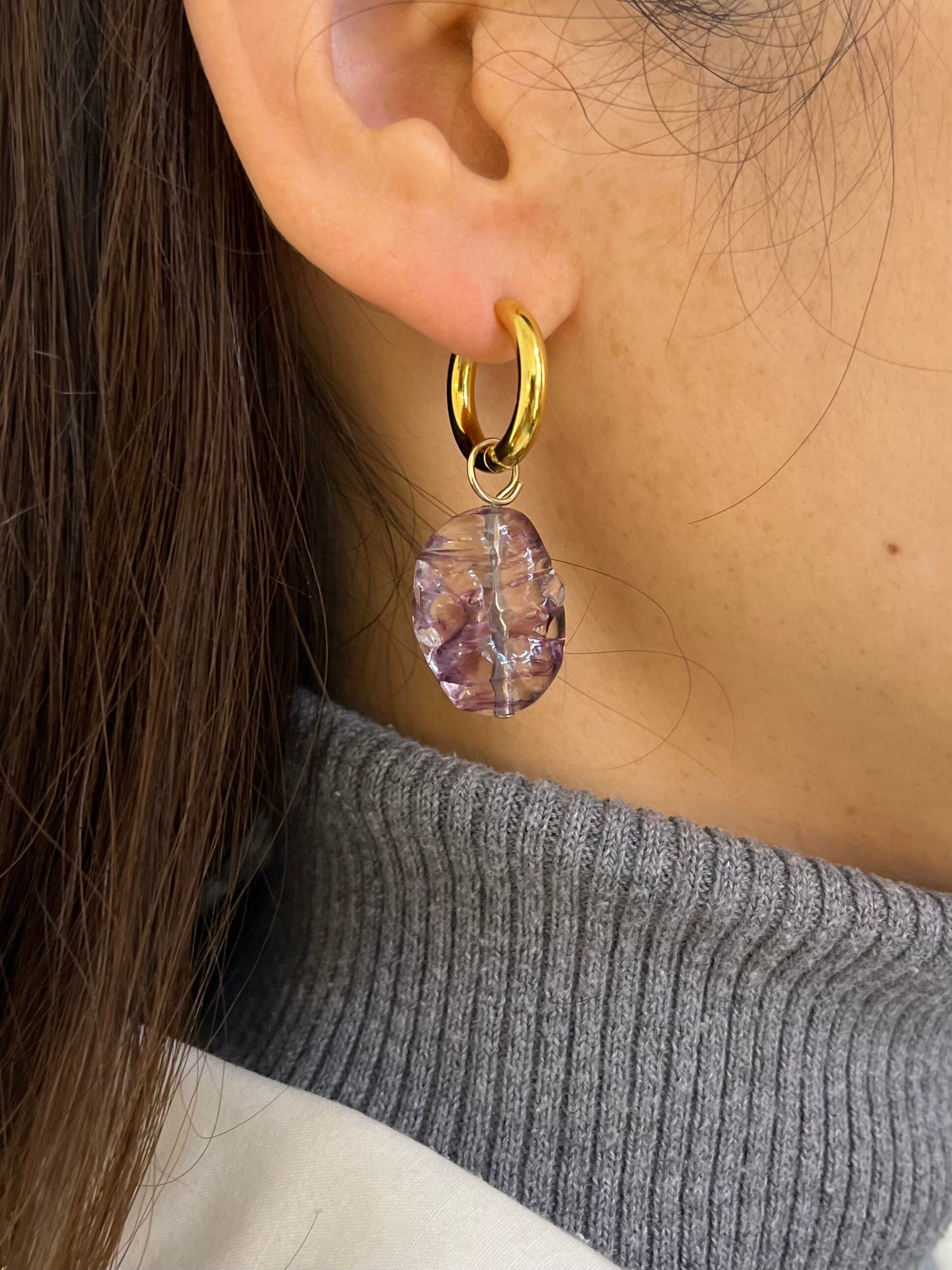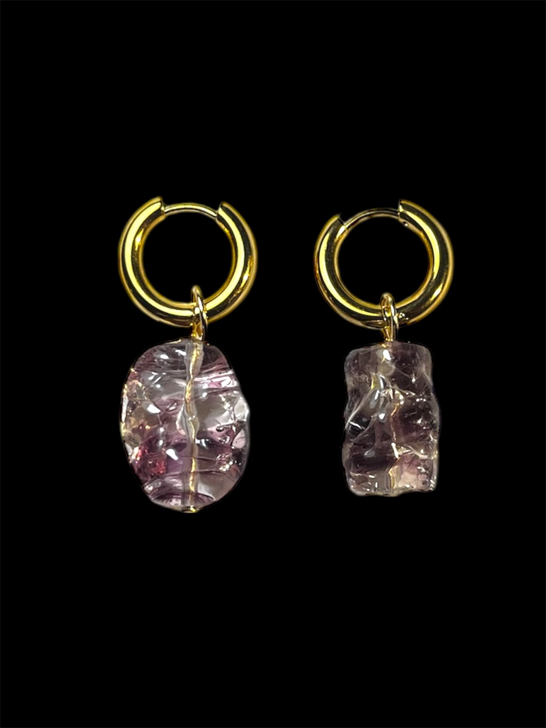 バイオレットのマーブル、クリアガラスのデコボコがかわいいヴィンテージガラス