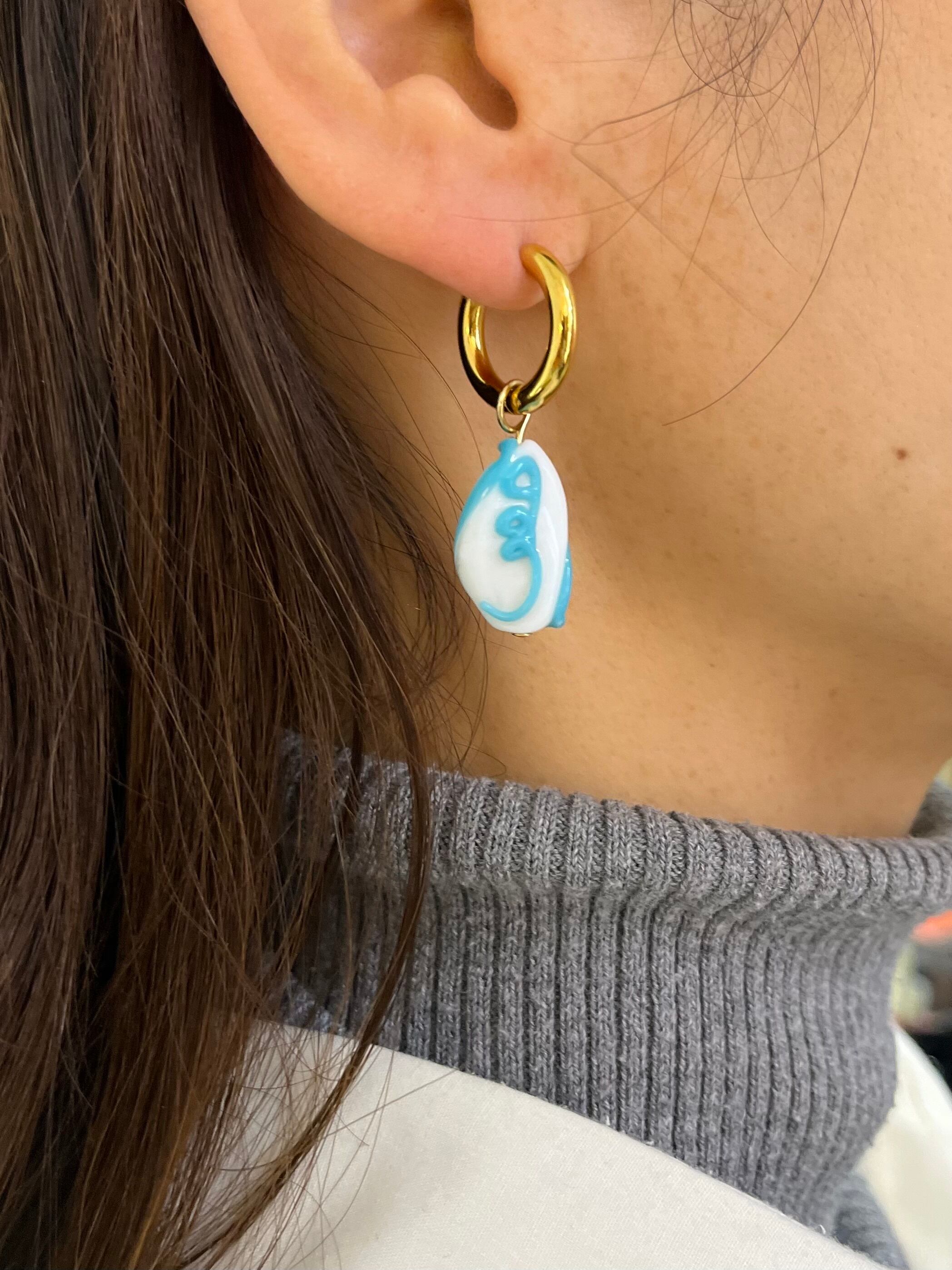 白いガラスベースにブルーラインの楽しいガラスと玉虫色の彫刻的なガラスのペアリング
